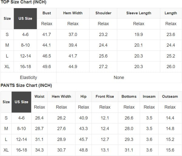 See size chart for approximate measurements.
